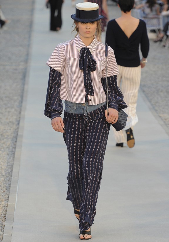 It featured some denim looks, mainly on the men this year than the prior one. I wonder if there will ever be a full on men’s collection at Chanel? The only one of the women’s looks that consisted of denim, looked to be a pair of jeans with some pajama pants over. You can check out the denim look below and a few other ones below.