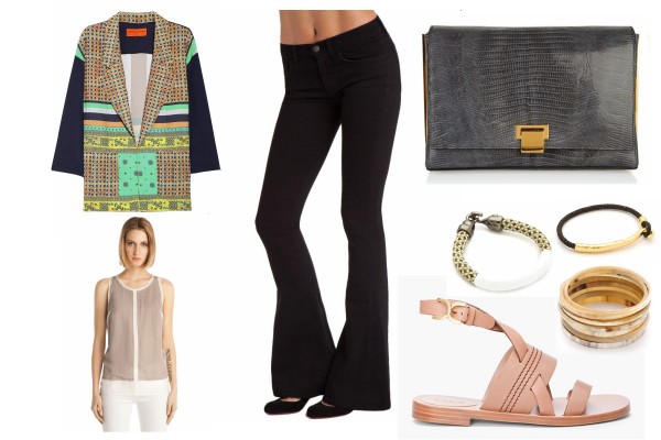This one has to be my favorite out of the three. One of the main reasons why I also chose these jeans to style is that they were the first pair that came to mind when I saw this Clover Canyon Jacket. I thought they would both compliment each other perfectly. I decided to play with clean lines with this look. I also wanted to add a jumble of bracelets to pile on the left wrist to help bring the look together because the sleeves of the jacket are cut short. I paired them with the Duffy tank from the J Brand RTW collection, The Row Metal-framed lizard clutch, Zeffira Rita Bangles, an Orly Genger by Jaclyn Mayer Annebelle Bracelet, Tai Gold Hook & Woven Leather Bracelet, and some Chloe Marcie Sandals. I think this look will work on many women. Even if the jeans are a bit to long and you decide to hack off the bottom (a la Christopher Kane x J Brand Flares) it will still work out just as fine.