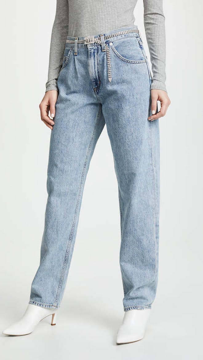 Acne Studios – These mid-blue jeans echo the oversized silhouettes that inform Acne Studios’ AW19 collection that is inspired by menswear tailor…