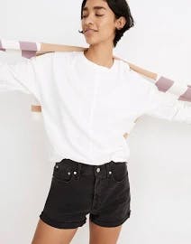 The American Eagle distressed denim shorts have a lot of positive reviews. Customers say they fit true to size, are comfortable, and are a must-have for summer. The only downside is that the length of the shorts is shorter than other American Eagle denim shorts.