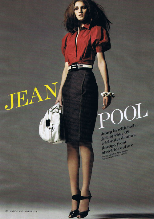 March’s issue of Marie Claire magazine featured denim as a key trend for Spring ’08. This is definitely a trend we can agree on! Vests, dresses, jackets, skirts and pants- all in denim. From high-end designer brands like Chanel and Dior to our favorites like Rock & Republic and 7 For All Mankind, denim is in!
